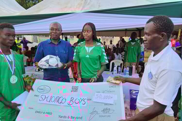 We support local talent by hosting under 17 football tournaments for girls & boys. We provide playing kits, sanitary pads and reward winners with cash , certificates and medals. Our last tournament had 4 girls and 4 boys team at the finals.